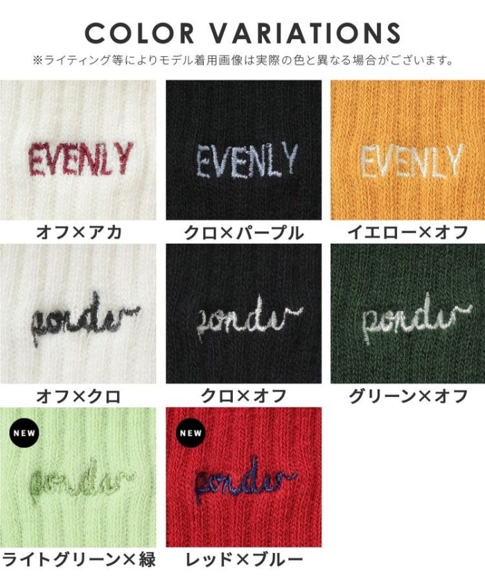 オフ×アカ, オフ×クロ, クロ×オフ, クロ×パープル, ライトグリーン×緑, レッド×ブルー |