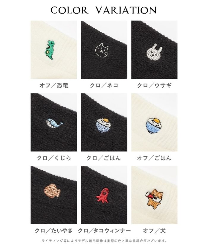 食べ物やアニマルなどのほっこりユニークなワンポイント刺繍。